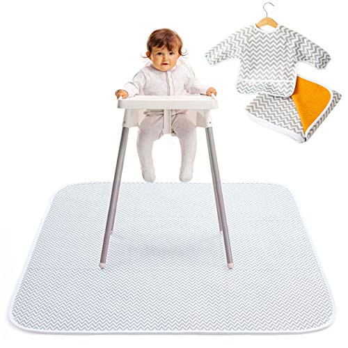Pearly Tale 2 In 1 Waterproof Baby Splat Mat For Under High Chair 51a X 51a With Toddler Smock And Weaning Ebook Large Non Slip